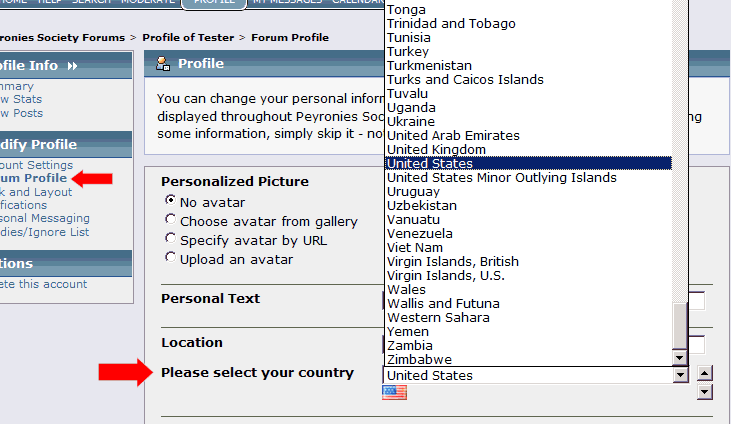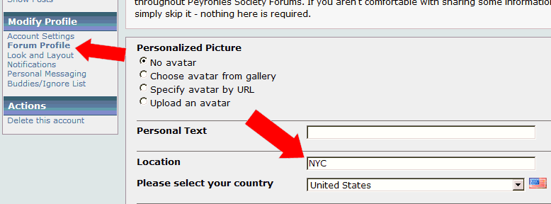 you can also type your location in under the Personal Text: heading if you want it to display on the forum by your name.